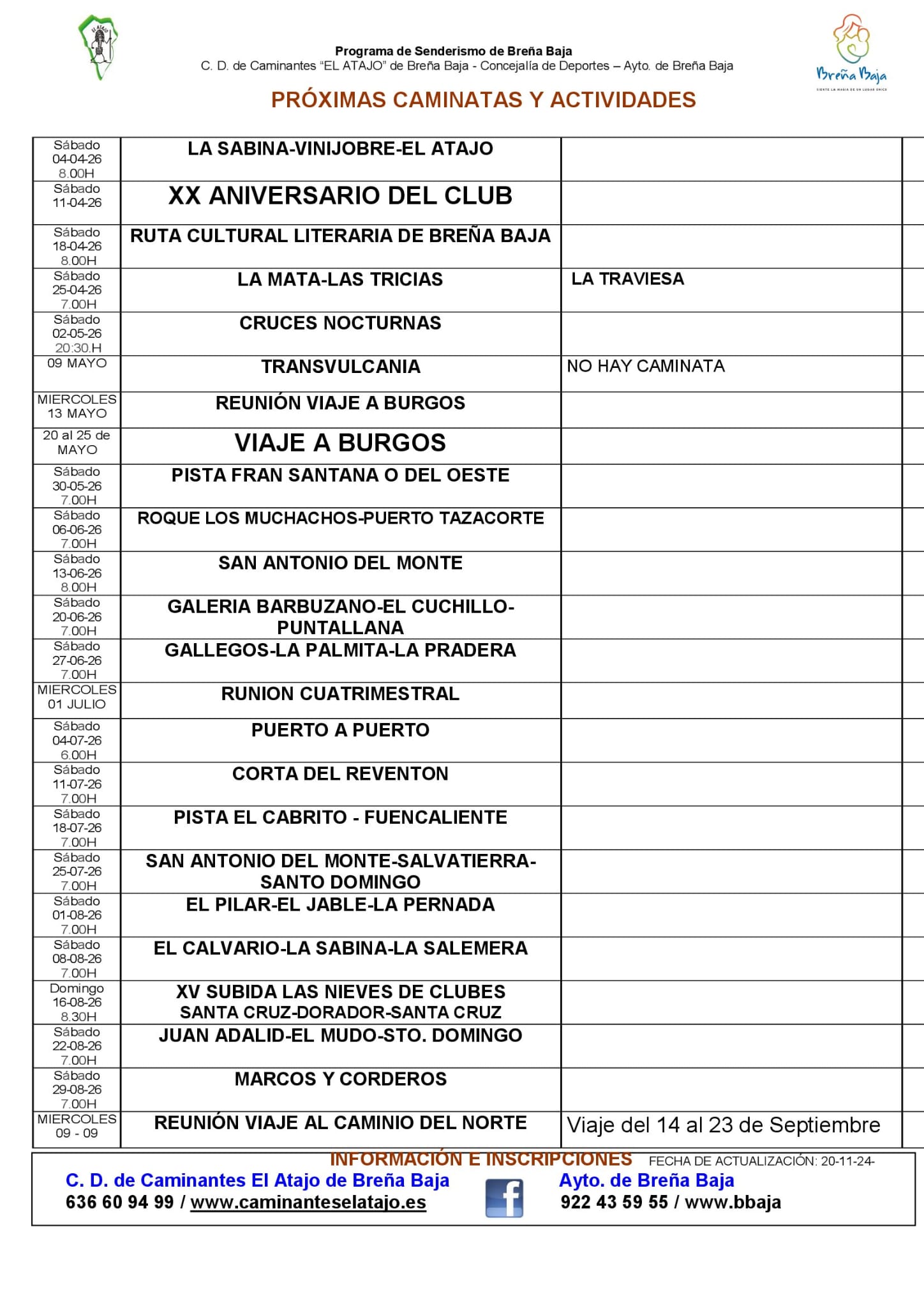 Próximas caminatas del Club de Caminantes El Atajo